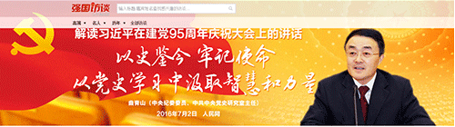 人民网北京72日电 (黄策舆)71日,庆祝中国共产党成立95周年大会在人民大会堂隆重举行,中共中央总书记、国家主席、中央军委主席习近平发表重要讲话。今日上午,人民网邀请中央纪委委员、中共中央党史研究室主任曲青山曲主任做客强国论坛,为广大网友解读习总书记的讲话精神。