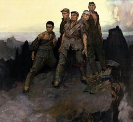1941年秋,八路军晋察冀军区一分区一团七连六班战士马宝玉、葛振林、宋学义、胡德林、胡福才,在狼牙山掩护机关、群众和大部队转移。完成原定的阻击任务后,他们把日寇引向三面悬崖的险峰绝顶,打光所有子弹,砸碎手中的武器,宁死不屈,英勇跳下万丈悬崖。他们就是“狼牙山五壮士”。