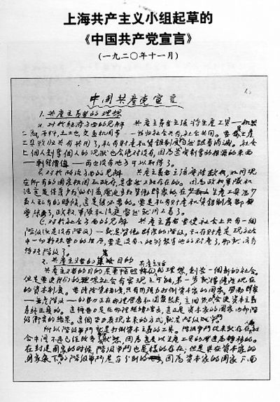 图为1920年11月上海共产主义小组起草的《中国共产党宣言》(局部)。