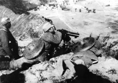 国民党军队采用正面作战的办法,那是德国人训练出来的,国民党军队很长时间接受德国教官的训练,采用德国人的作战方法。日本人也使用这个方法,日本军队也是由德国人训练的。但中国和日本不能相比,中国的武器、军队素质等都比不上日军,所以中国老百姓说:我们是用血肉之躯对抗日本的钢枪铁炮。战争中中国军队伤亡很大,正面作战的方法值得思考。