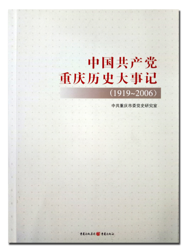 ? 【简介:由中共重庆市委党史研究室组织编写的《中国共产党重庆历史大事记》(19192006),坚持实事求是的思想路线,以中共中央《关于若干历史问题的决议》和《关于建国以来党的若干历史问题的决议》为准绳,本着“广征、核准、精编、严审”的工作方针,采用编年体和纪事本末体编纂体例,科学、准确、翔实地记述了1919年至2006年党领导重庆人民进行革命、建设和改革开放的伟大实践。全书共计40余万字,是一本集系统性、史料性、实用性为一体的地方党史专著,是学习、研究、宣传中共重庆历史的权威性著作。该书的出版,为深化重庆党史研究和加强党史宣传提供了准确可靠的史料依据,有助于各级党员干部按照习近平总书记“学习党史、国史是必修课”重要指示精神,进一步了解、学习中共重庆历史,汲取精神和智慧力量。】
