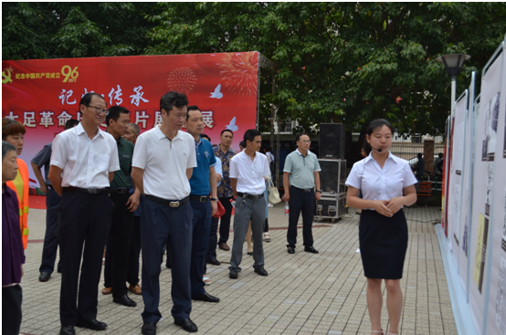 为纪念中国共产党成立96周年,627日,“记忆 传承——大足革命历史图片展”巡展启动仪式在石马镇举行。大足区委常委、宣传部长蒋朝彬出席仪式并讲话。大足区委党史研究室主任周荣海、石马镇党委书记陈奇林作了发言。
