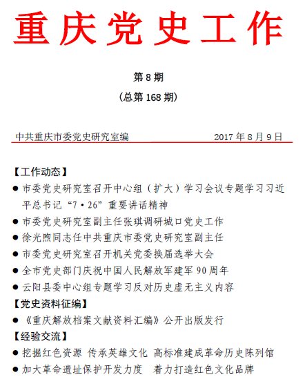 重庆党史工作2017年第8期(总第168期)