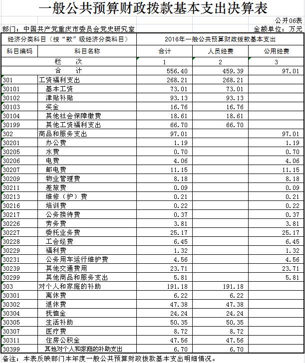 中国共产党重庆市委员会党史研究室2016年部门决算
