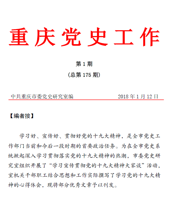 重庆党史网 >党史资讯 >《重庆党史工作》