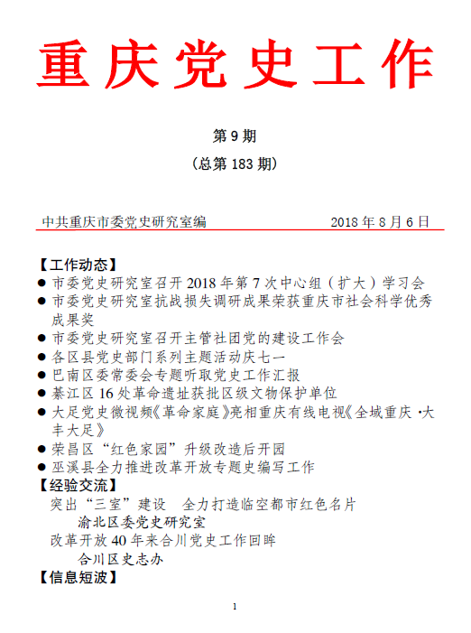 《重庆党史工作》2018年第9期(总第183期)