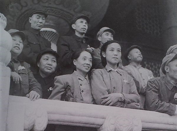 1949年10月1日开国大典,陆璀等在天安门城楼上参加观礼。前排自左至右为康克清、罗叔章、沈兹九、陆璀。