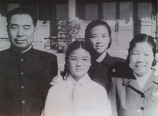 1952年春,周恩来总理、邓颖超同志和陆璀及其女儿陆兰沁摄于西花厅。