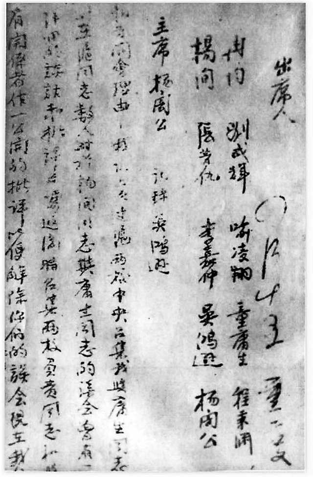 出席会议的有矛盾双方的童庸生、杨洵;还有冉钧、刘成辉、喻凌翔、程秉渊、张昔仇、李嘉仲、吴鸿逊?;嵋橛晌夂柩芳锹?。