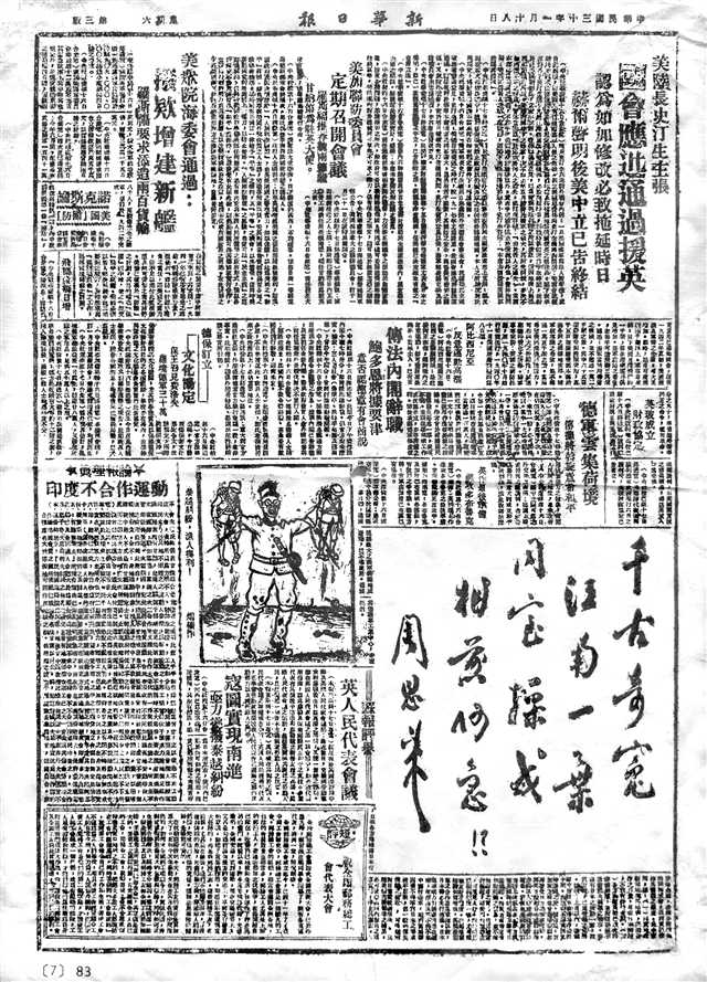 1941年1月18日,刊登有周恩来为“皖南事变”题词的《新华日报》版面。(本报资料图片)