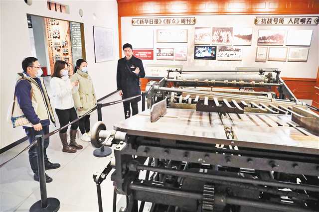 2月13日,重庆红岩革命历史博物馆讲解员在为观众讲解该馆镇馆之宝——《新华日报》印刷机。记者 卢越摄/视觉重庆