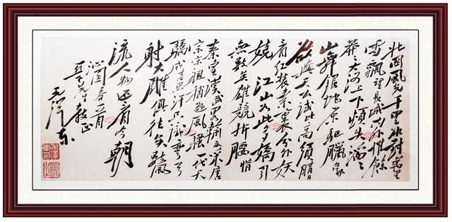 1936年2月,毛泽东率领部队东渡黄河,奔赴抗日前线时,在途中目之所及,群山环抱、沟壑纵横、千里冰封,不禁豪情满怀,在一农户家中挥笔写下了这一千古名篇。