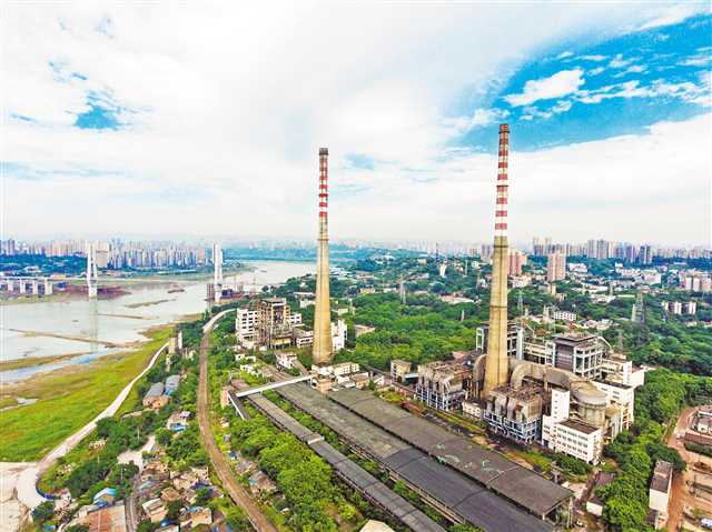6月4日,位于九龙坡黄桷坪的重庆发电厂老厂区。蓝天白云下,两根240米高的烟囱静静屹立,挺拔的身姿记录着过去的辉煌。