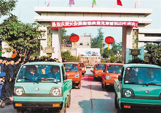 1984年,第一批长安牌微型载重汽车下线出厂。(受访者供图)